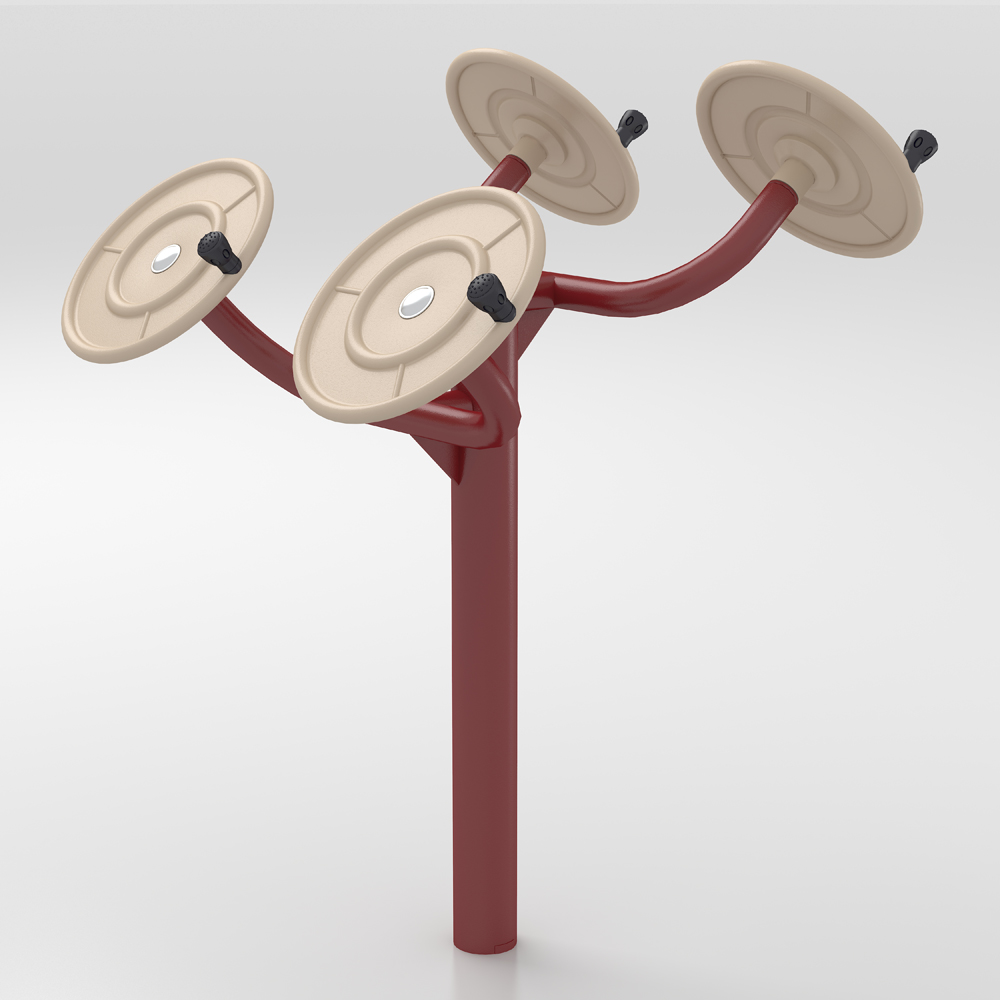 使用方法:1、使用器材前,先進(jìn)行適當(dāng)?shù)臒嵘砘顒樱p腿直立成馬步,上體保持正直,雙臂自然張開,手握手柄推動圓盤做順時針或逆時針運動;