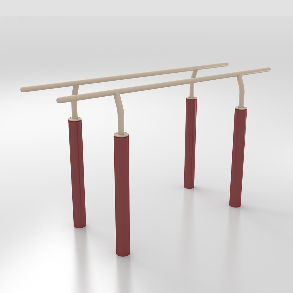 使用方法:1、使用器材前,先進行適當的熱身活動, 雙臂屈伸,練習者兩手握住雙杠一端,跳上呈雙臂支撐,然后兩臂同時彎曲,兩腿伸直,使杠面到達胸部位置,然后兩臂用力迅速伸直支撐,重復進行;
