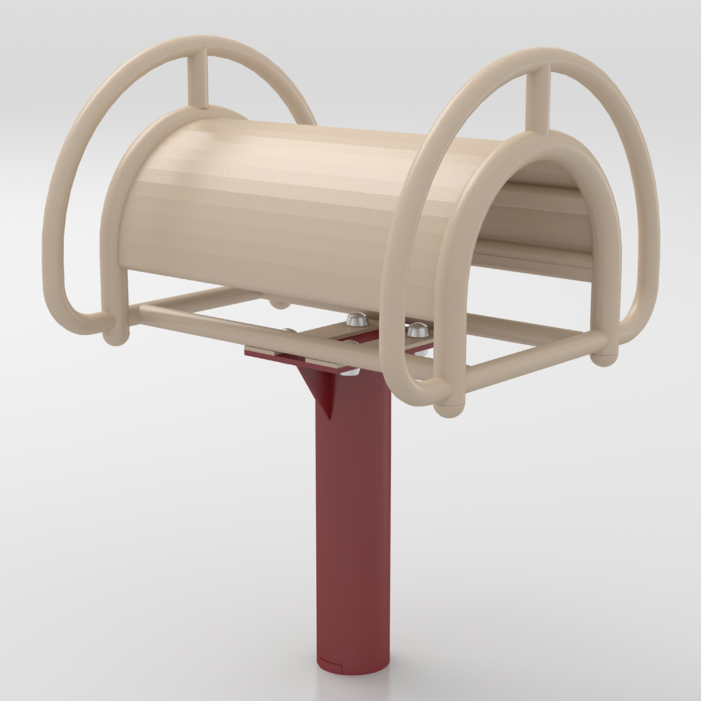 背靠器材,雙手握緊護欄,緩慢向后彎屈身體;
