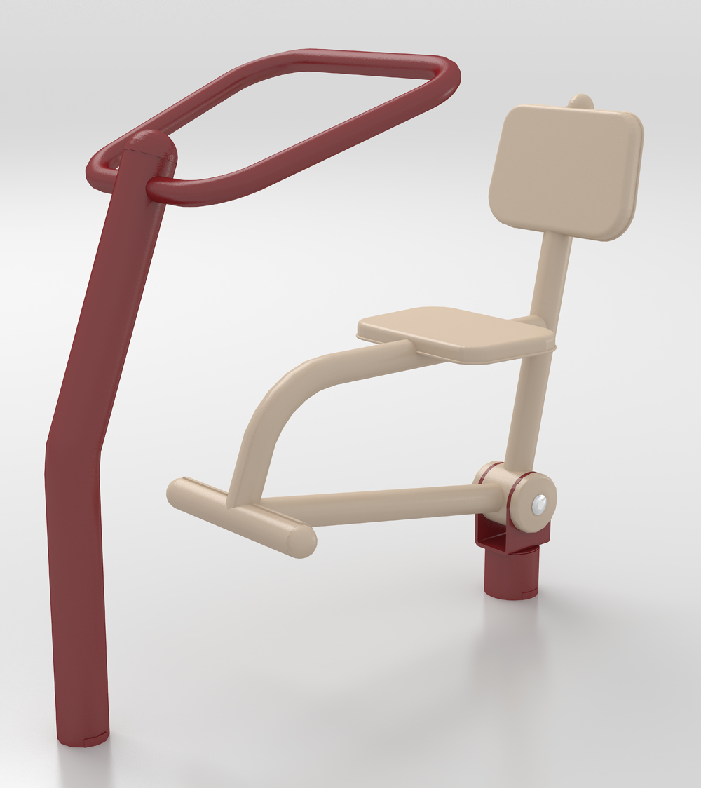 使用者坐于座墊上,手抓前方立柱的扶手,背靠靠背,緩慢向后伸展身體,使腰腹部得到充分舒展;