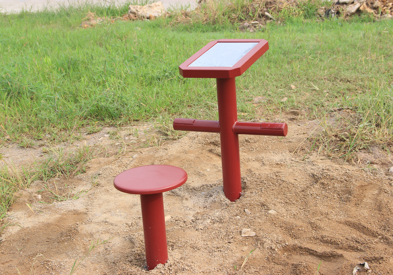 在座板上坐穩,雙腳放在腳踏板上,雙腿伸直,腹部收攏,雙肩并攏,用力向前伸展,觸摸訓練器上方刻度盤,進行身體屈伸練習;