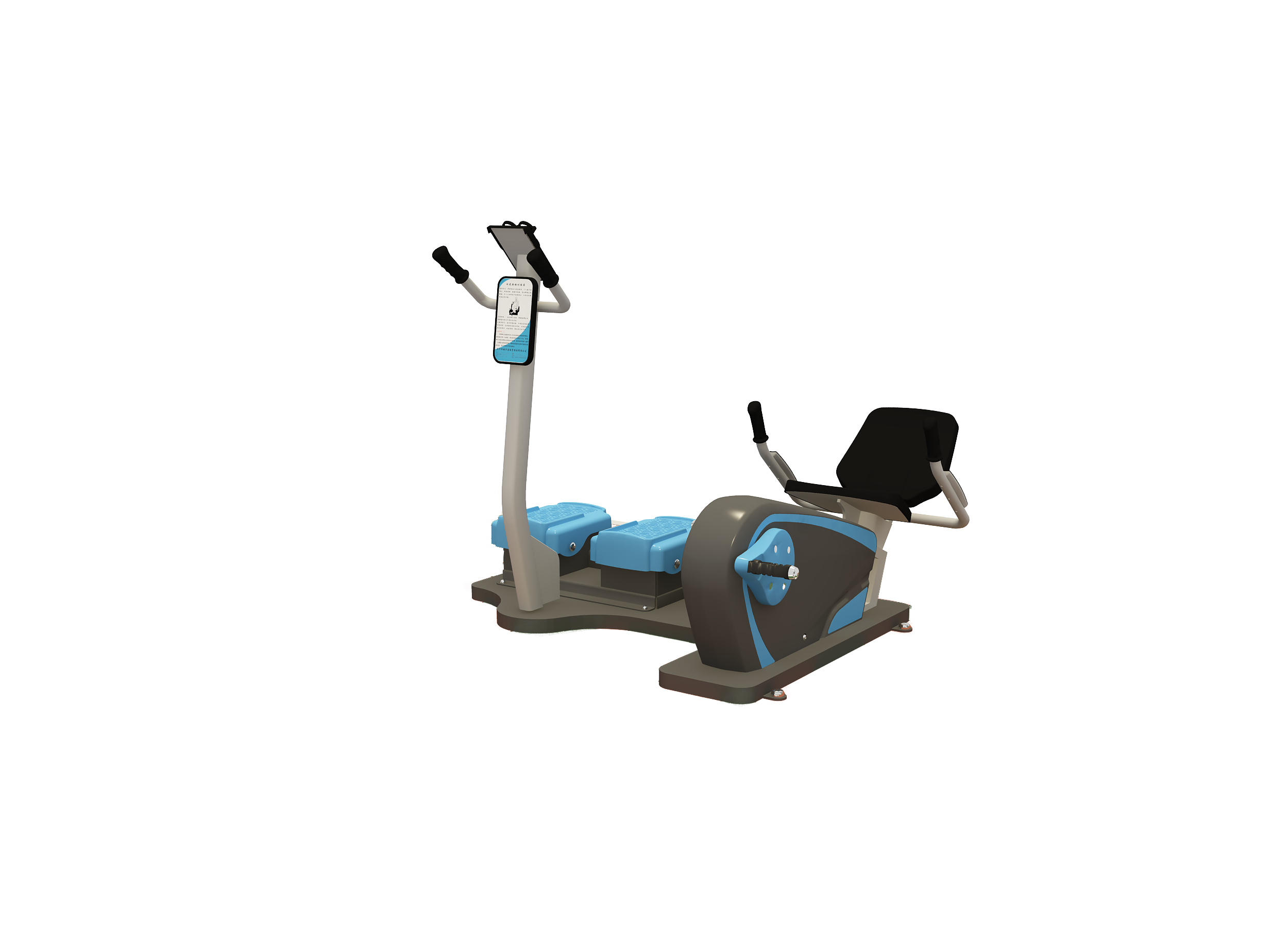 使用方法:本器材雙人配合使用,一方做騎行運動,另一方雙腿彎曲成馬步姿態,雙方產生關聯運動。